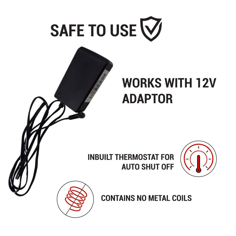 SAFE TO USE – SandPuppy Heatpad works on a 12V DC adaptor which is very safe to use compared to 230V AC current heating pads. It also has an inbuilt thermostat to prevent overheating
