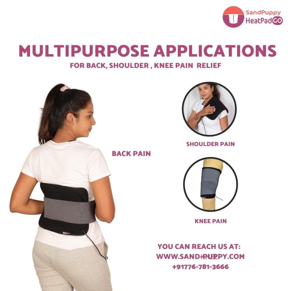 SandPuppy HeatPad Go is a safe & multi-purpose heating pad for back, knee & shoulder pain relief. This heating pad could also be used for heat therapy on thighs, calves & for other joint pain relief.