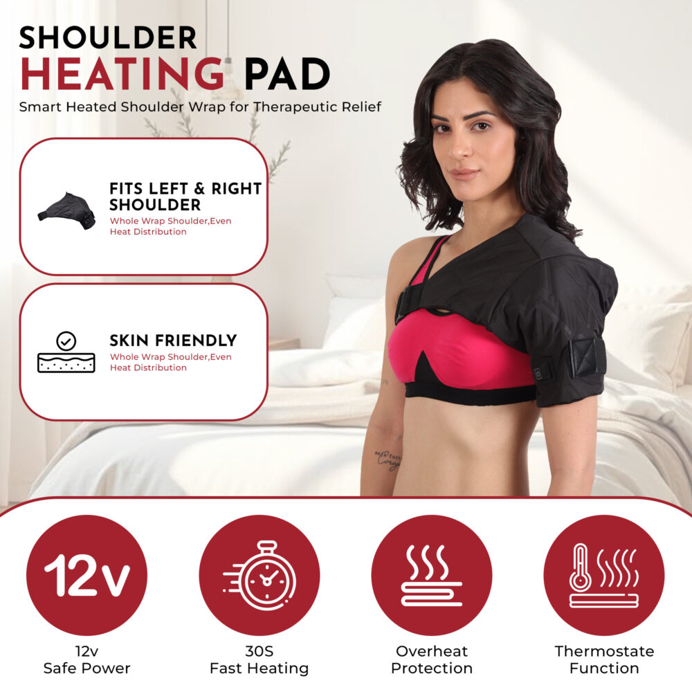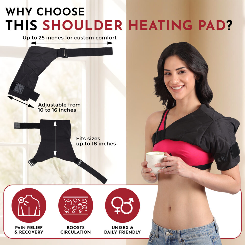 Electric Heating Pad for Shoulder Pain Relief (Black) | Suitable For Both Shoulders | Adjustable Heating Levels | Safe to Use
