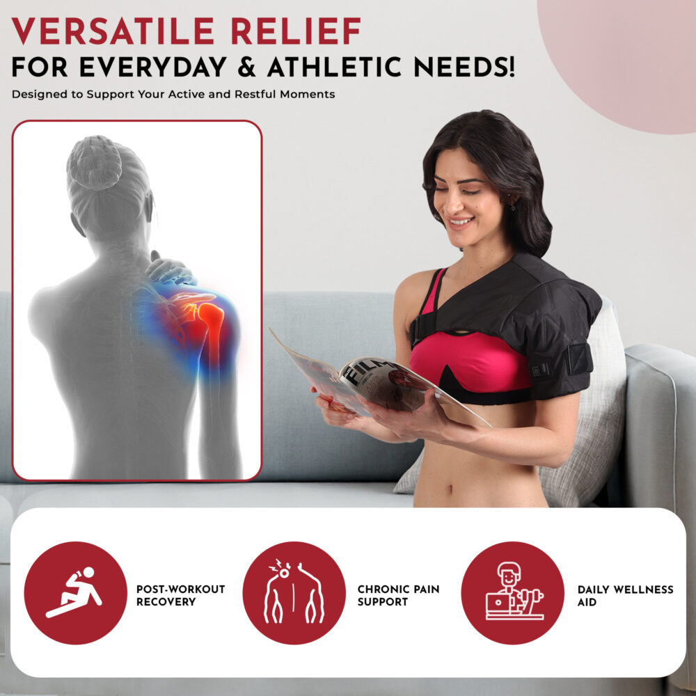 HEATING FOR FOR SHOULDER PAIN RELIEF – Shoulderstrap – heating pad for shoulder pain relief works on Far Infrared Technology heat therapy that helps in faster recovery by improving blood flow to the targeted area. Deep penetration of FIR helps in muscle and tissue relaxation.